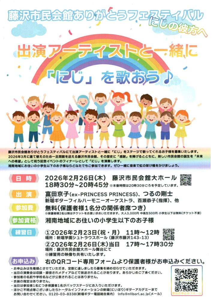 新堀ギターオーケストラ、そしてゲストアーティストの演奏と、湘南エリアのこどもたちによる「にじ」の大合唱。