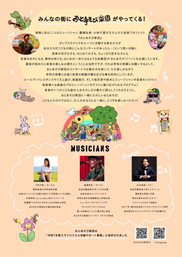 地元藤沢をこよなく愛するお二人の、パフォーマンスと「おとあそび」のひととき、ぜひ一度、見て聞いて参加してしてみては。