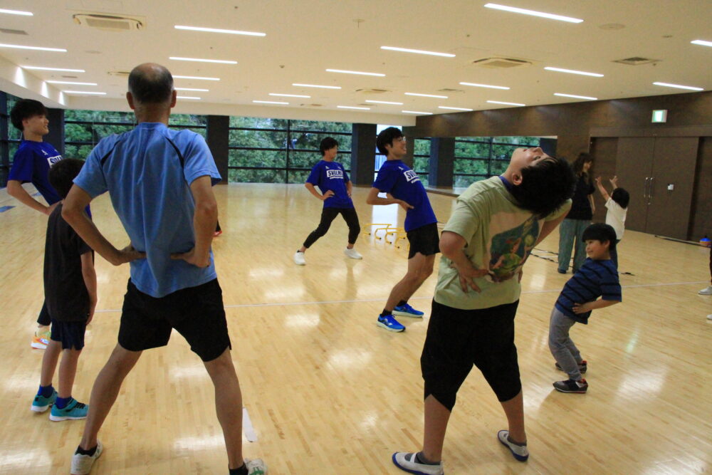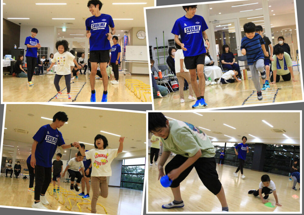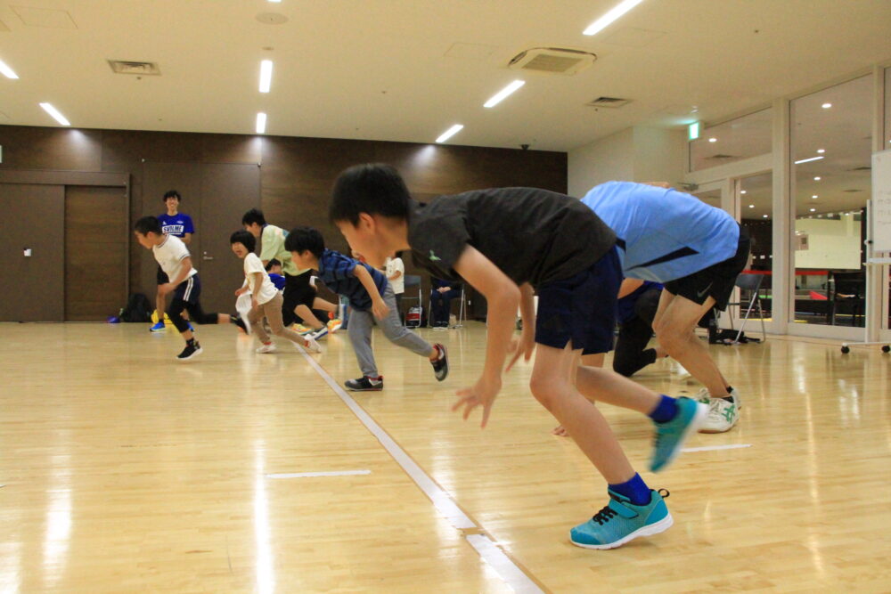 まずは準備体操。続いてラダーや小さいハードルを使ってのトレーニング、とはいえ、楽しくはしゃぎながら。鬼ごっこやちびっことコーチ陣の対抗リレーなどで走り回り、あっという間に時間が経ちます。整理体操を終えて終了。12月まで教室は続き、1月の本番を迎えます。
