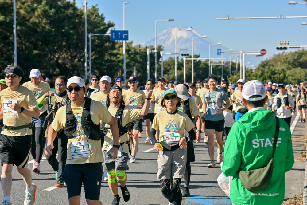 メイン種目のフルマラソンは、大磯プリンスホテルをスタート・ゴールとし、国道134号線を走って江ノ島折り返しのフラットコース。コース上からは湘南の海や富士山もよく見えます。6時間30分の制限時間に約2万人のランナーが参加します。環境に配慮してエイドステーションを廃止し、ランナーはマイボトル、マイカップ持参で、200mごとに設置された給水ポイントにて自ら補給します。